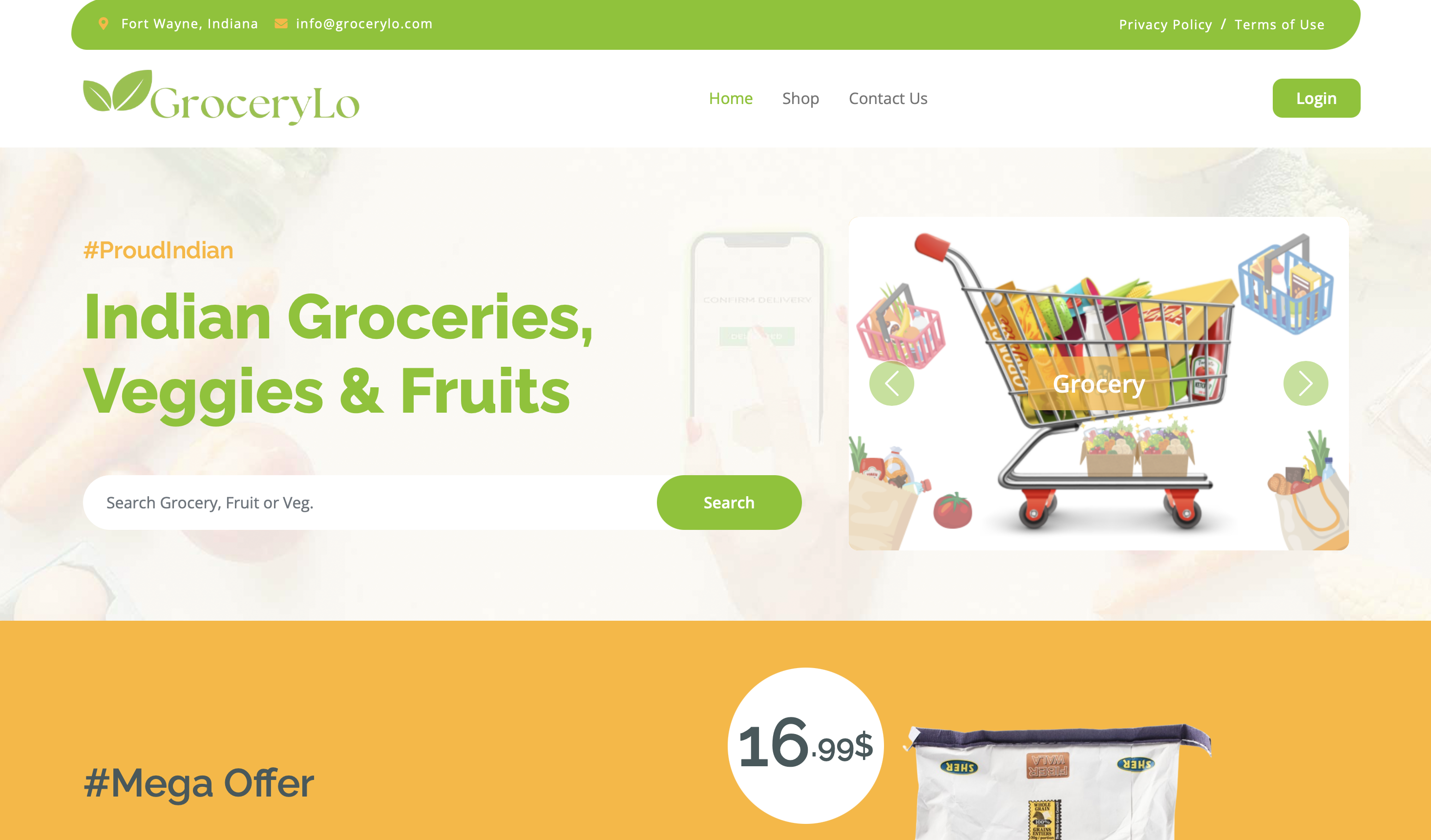 Responsive grocery shopping website with full admin control and smooth user experience.